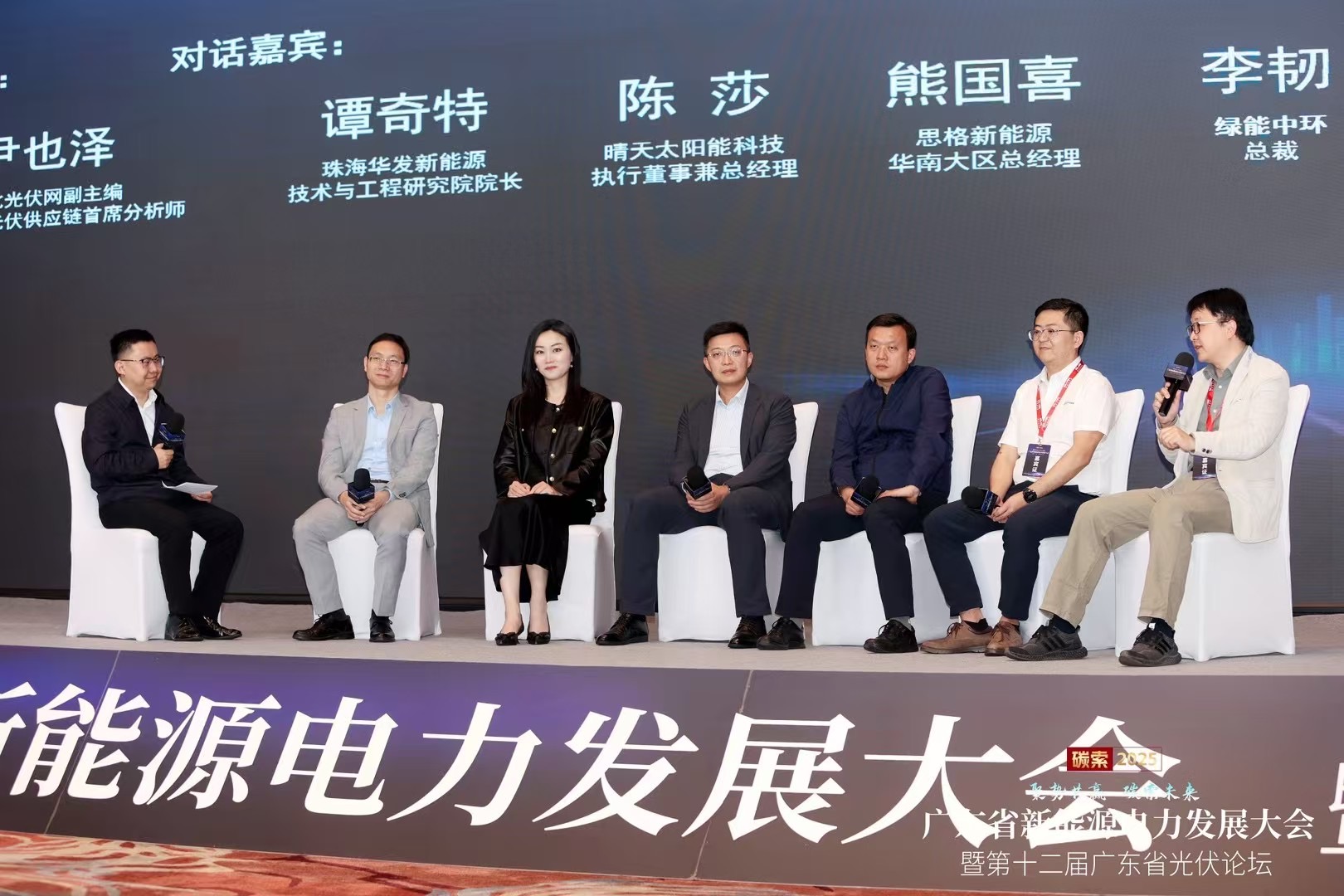 4月10日,廣東省新能源電力發展大會暨第十二屆廣東省光伏論壇在廣州圓滿舉行。作為華南新能源領域年度盛會,本次論壇匯聚300+行業權威專家與龍頭企業代表,圍繞"聚勢共贏,碳索未來"主題,共繪新能源發展新藍圖。廣東晴天總裁陳莎女士壓軸出席高端對話,與業界大咖共探分布式光儲破局之道。